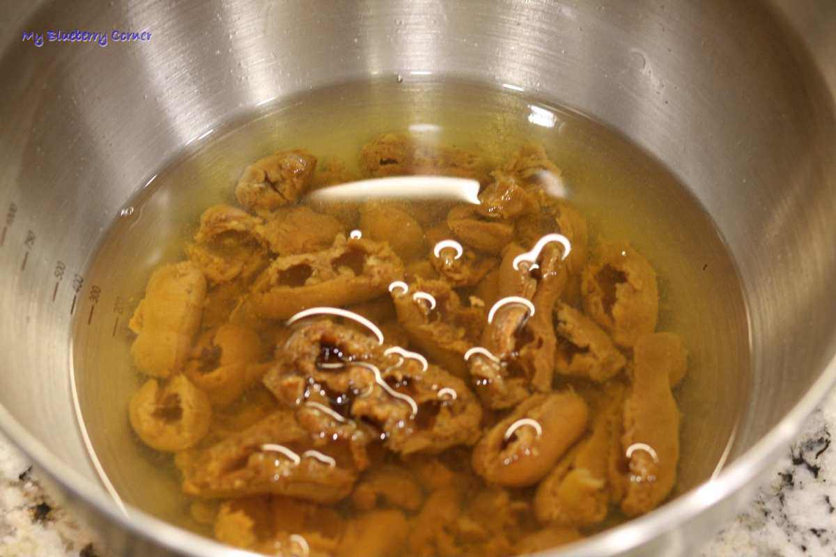 Miąższ (świeży lub sprasowany) zalać wrzątkiem i zostawić do namoczenia przez ok. 30 minut, aż do wystygnięcia wody.