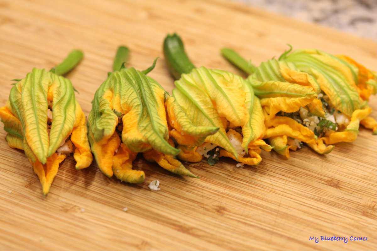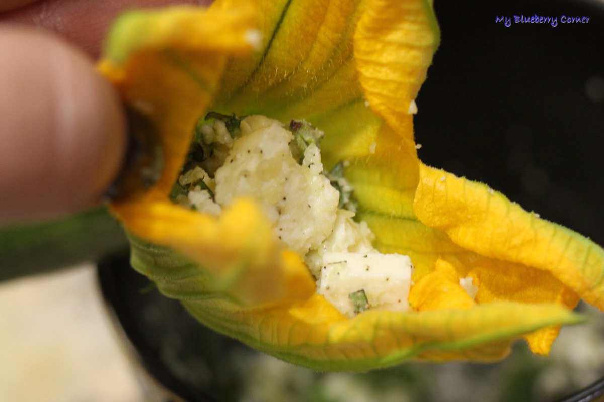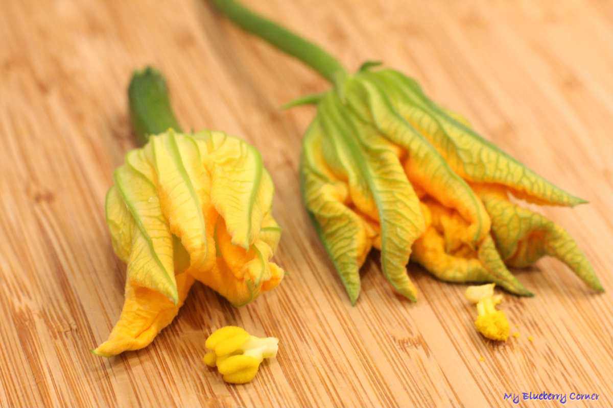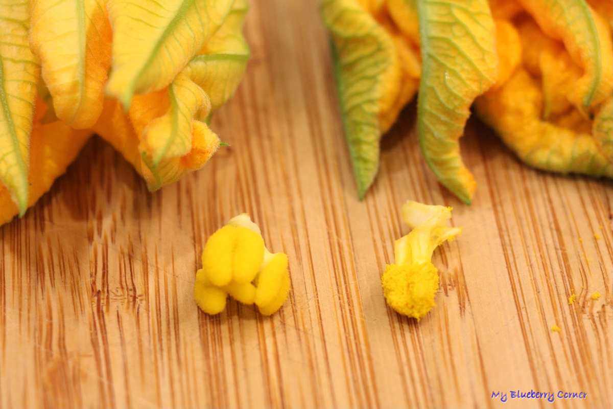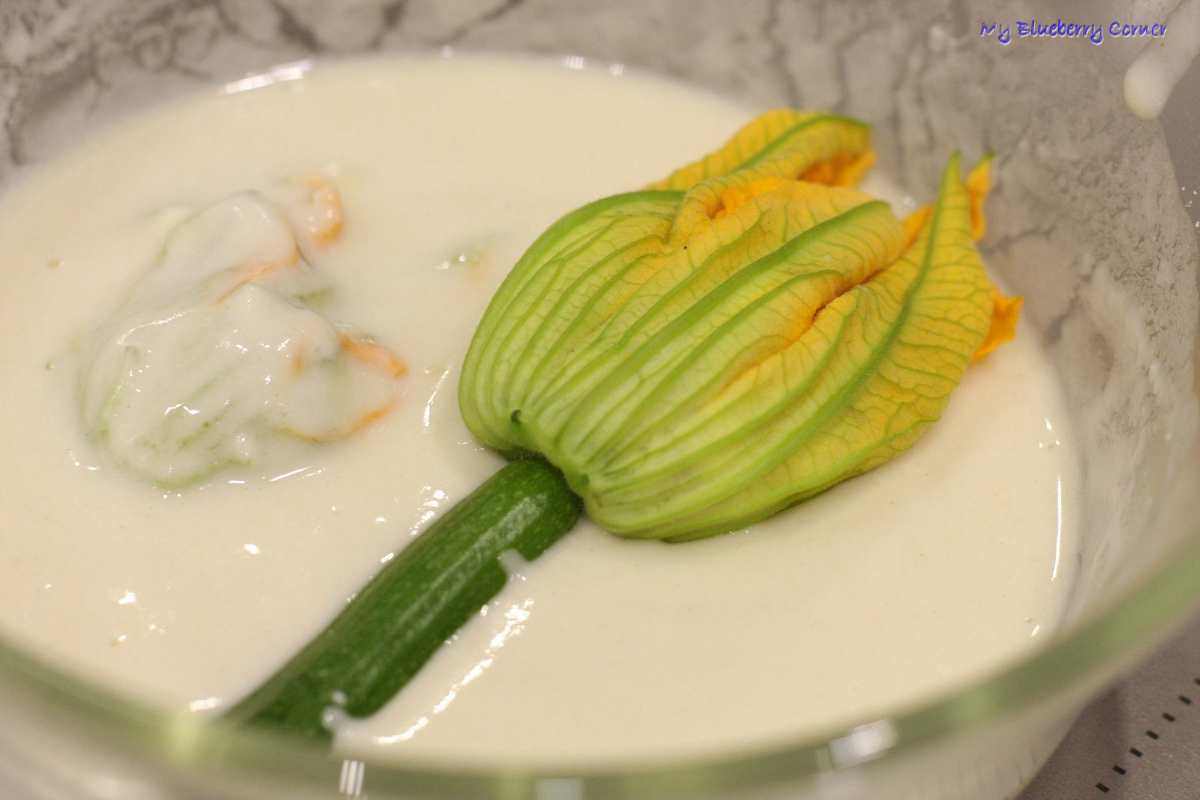 Kwiaty cukinii umyć i pozbawić ze środka kwiatków słupki, które dają gorzki smak . W tym celu należy wsadzić palec do środka kwiatka, aż do podstawy i oderwać słupek. Trzeba uważać, żeby nie uszkodzić kwiatka.