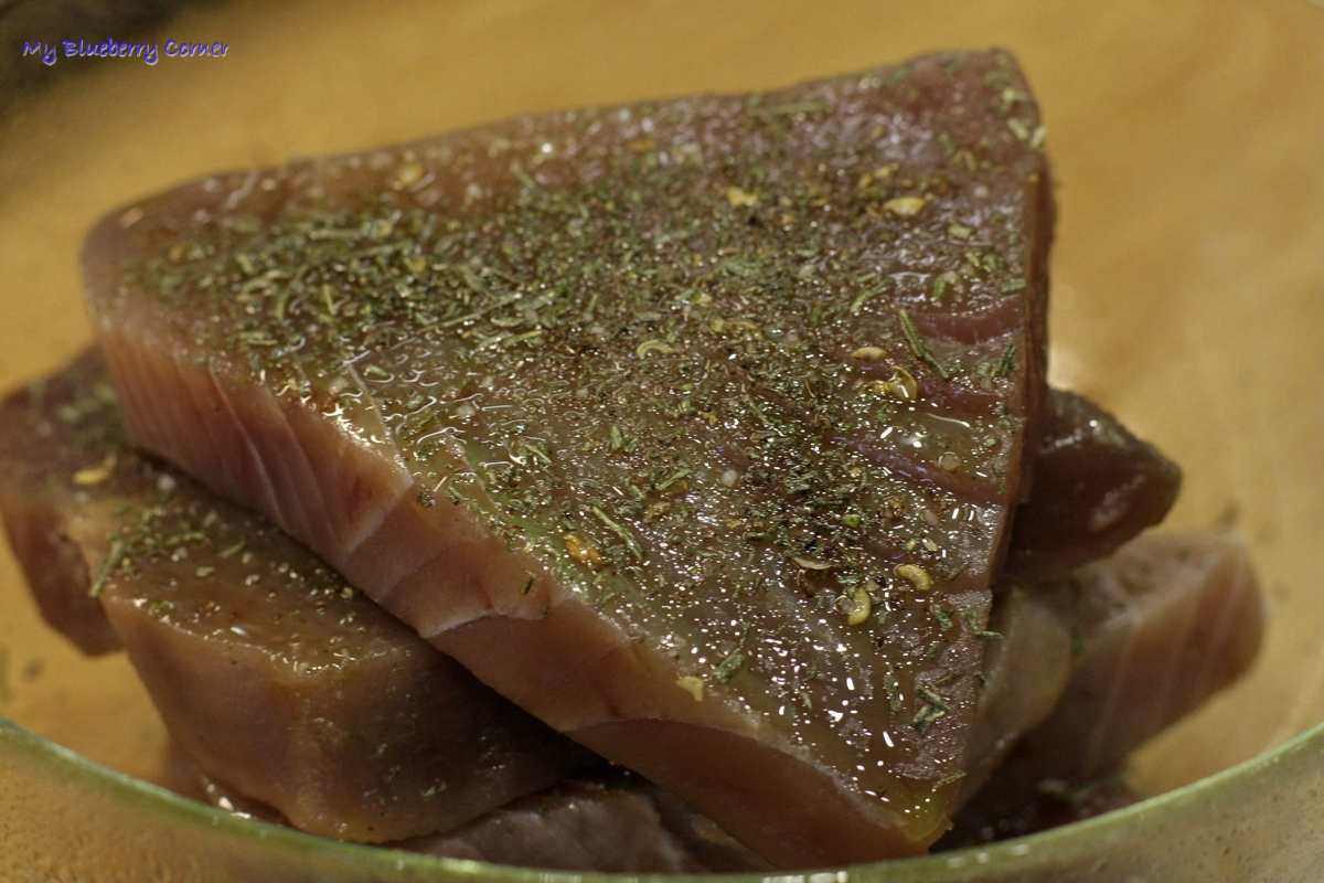 Mięso tuńczyka jeśli zamrożony – rozmrozić.