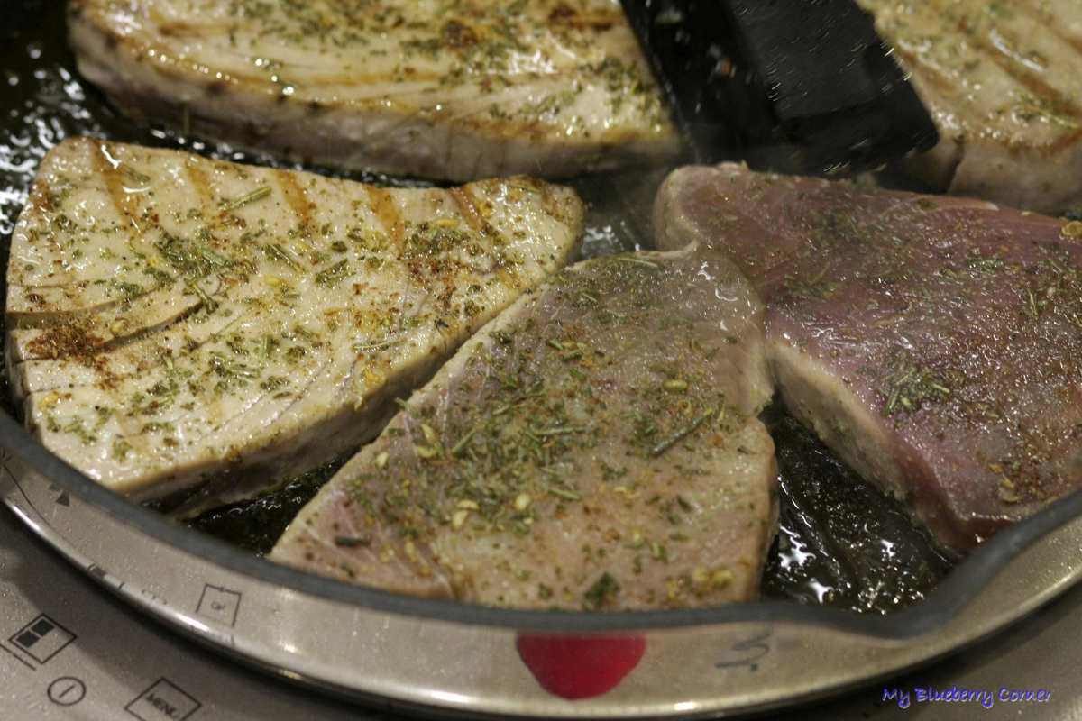 - 5 świeżych lub mrożonych steków z tuńczyka ( ok. 150 g – każdy)