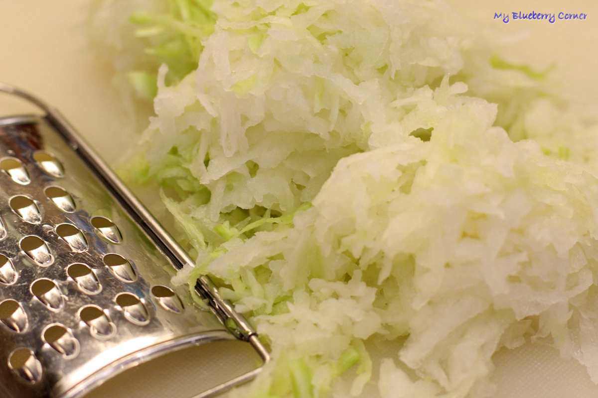 W tym czasie kalarepę obrać i zetrzeć na tarce o dużych oczkach.