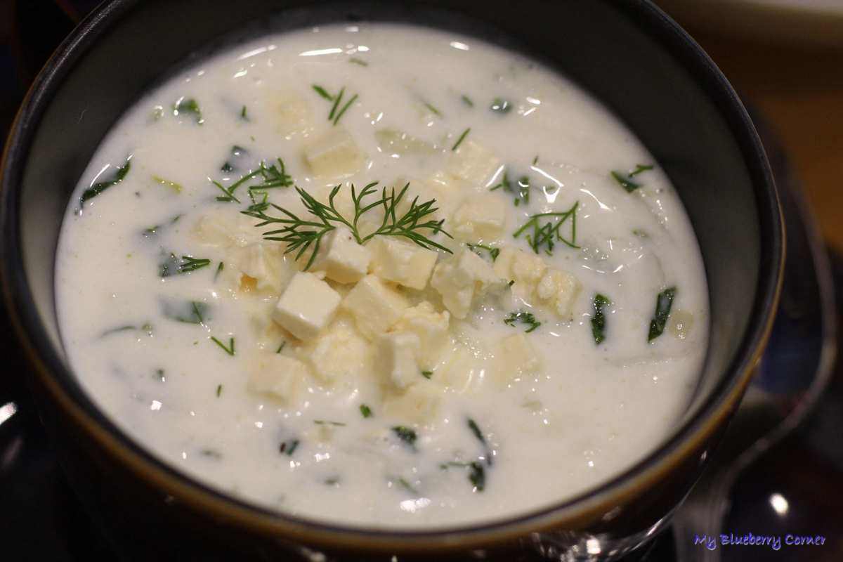 Jeszcze raz chłodnik zamieszać i rozlać do salaterek. Na wierzch posypać odrobiną koperkiem, na to wrzucić kilka kostek pikantnego sera feta. Szpinakowy chłodnik z fetą powinno się jeść na zimno.