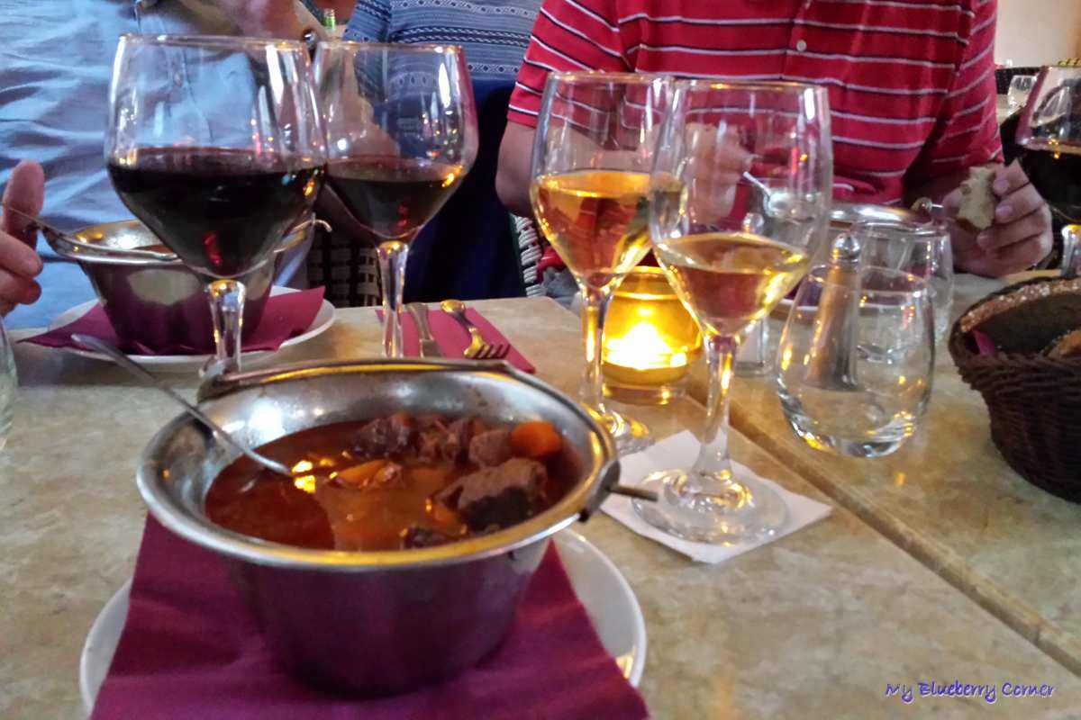 Są tam dziesiątki restauracji, kafejek, barów i food trucków, tu każdy znajdzie coś dla siebie. Ja mogę polecić elegancką, francuską, ale dość drogą restaurację Café Vian. Jadłam tam pyszną zupę gulaszową i paprykarz z kurczaka z galuszkami – typowe węgierskie potrawy.