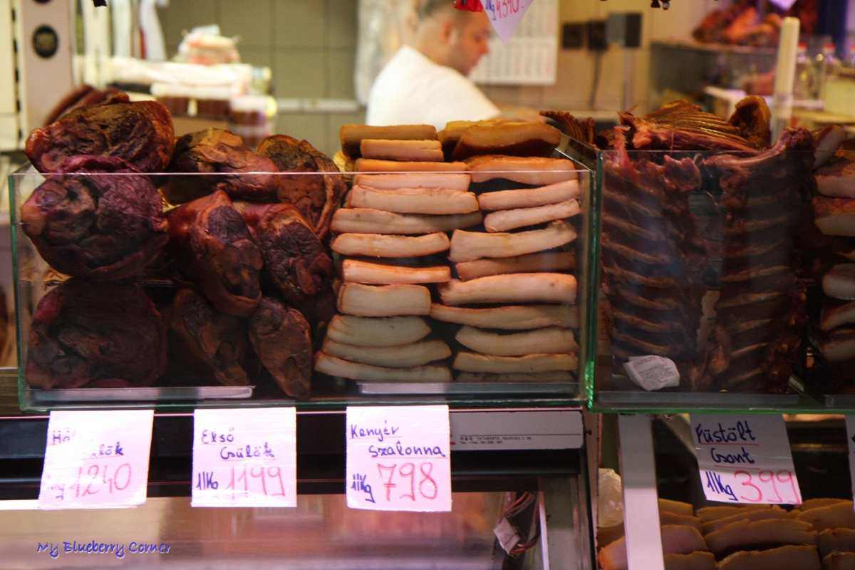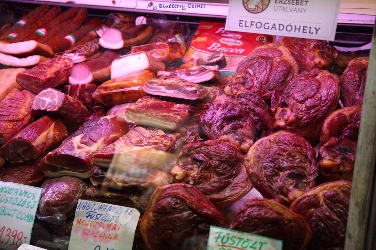 Na parterze kupicie każdy rodzaj mięsa – koninę, wołowinę, wieprzowinę, jagnięcinę, mięso gęsi, kaczki i kurczaka. Przy okazji muszę się przyznać, że kupiłam jedną stłuszczoną gęsią wątróbkę, z której zamierzam przygotować Foie Gras. Bardzo chcę wiedzieć, czym zachwycają się Francuzi jedząc Foie Gras. Na Węgrzech hodowanie drobiu wodnego dla takiej wątroby jest dozwolone. Na tym targowisku znajdziecie najróżniejsze sery, wędliny i alkohole, owoce, warzywa, przyprawy i słodycze.