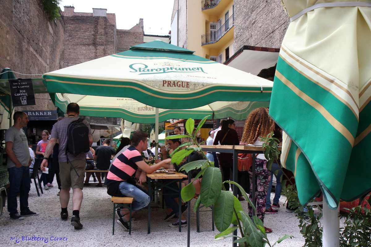 Na Kazinczy utca od strony Király utca jest cudny, stary i klimatyczny pub Wichmann kocsma, gdzie wypijecie przepyszne lokalne piwo za jedyne 300 forintów za ½ litra. Atmosfera jest tak fantastyczna, że będziecie chcieli tu bywać codziennie, by choćby na stojąco (bo często nie ma miejsca) wypić jeden kufel pysznego bursztynowego trunku. Gdzieś w środku Gozsdu Udvar stoją dwa food trucki – jeden z piwem i innymi wyskokowymi trunkami. W drugim – Zing Burger – kupicie przepyszne hamburgery w kilku wydaniach. Palinka w wielu smakach – (morelowa, śliwkowa, jabłkowa, gruszkow) jest dostępna wszędzie – to narodowy węgierski, mocny trunek. Za to Unicum Szilva to mój numer 1 na liście likierów. Ziołowy smak Unicum z dodatkiem smaku śliwkowego bardzo mi pasuje (oczywiście przywiozłam sobie butelkę). Idąc Kazinczy utca w kierunku Rákóczi út, po prawej stronie znajdziecie food truckowy zakątek – Street Food Karaván. Są tu typowe, węgierskie langosze – smażone w oleju drożdżowe placki z przeróżnymi dodatkami (oryginalne to śmietana, czosnek i starty żółty ser). Dania kuchni tajskiej, włoskiej, kawa, ciastka, hamburgery, żarcie wegetariańskie, oczywiście piwo i inne trunki alkoholowe i bezalkoholowe. Każdy tu znajdzie swój smak.