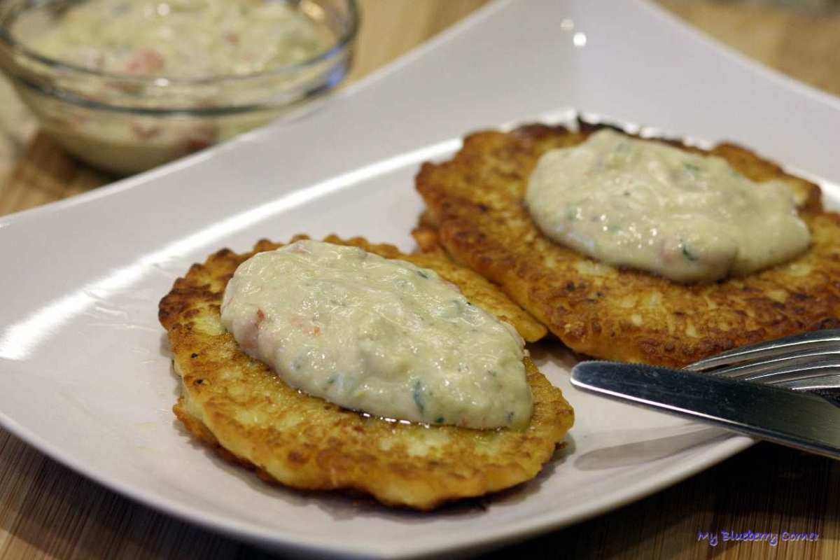 Dip z awokado podawać do placków z cukinii, z kabaczka lub ziemniaczanych.