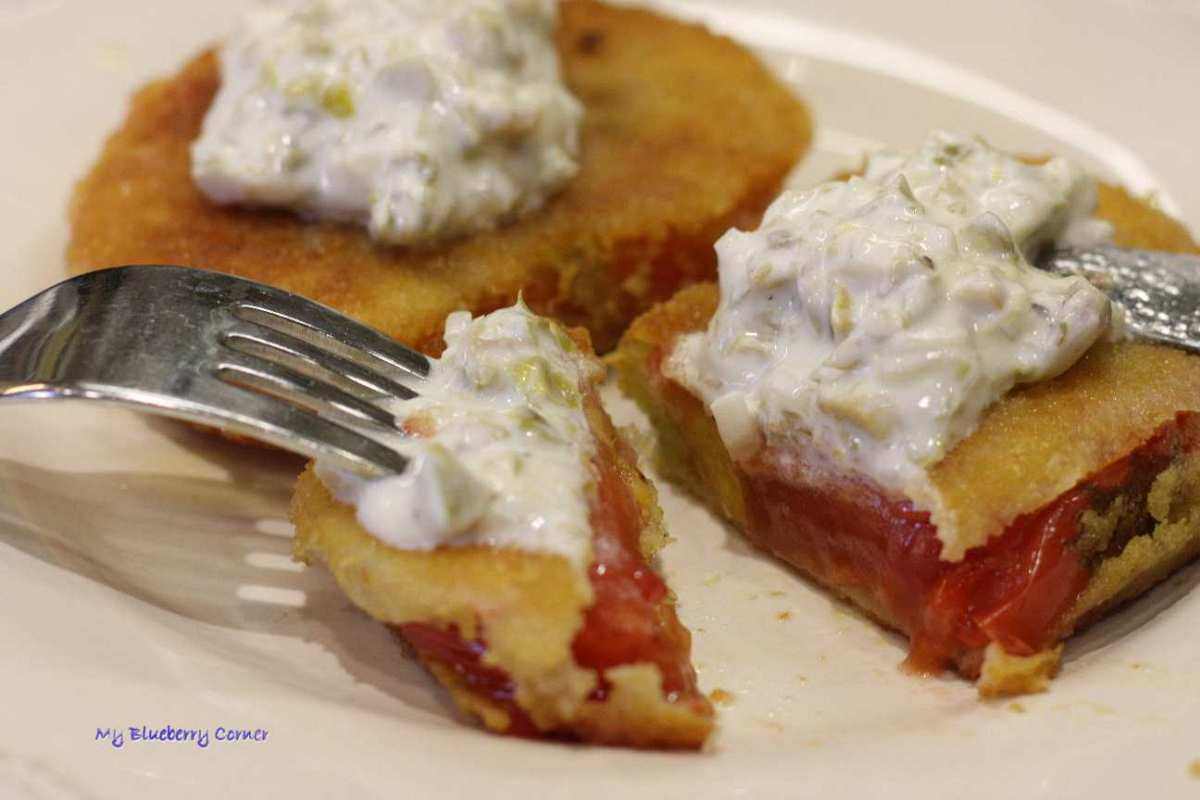 Smażone, czerwone pomidory przygotowuje się łatwo i szybko. Do tego dania należy użyć dojrzałych, mięsistych i jędrnych pomidorów. Absolutnie obowiązkowym dodatkiem jest dip oliwkowo-kaparowy – bez niego to danie nie istnieje. Ta fantastyczna przekąska może też być lekką kolacją.