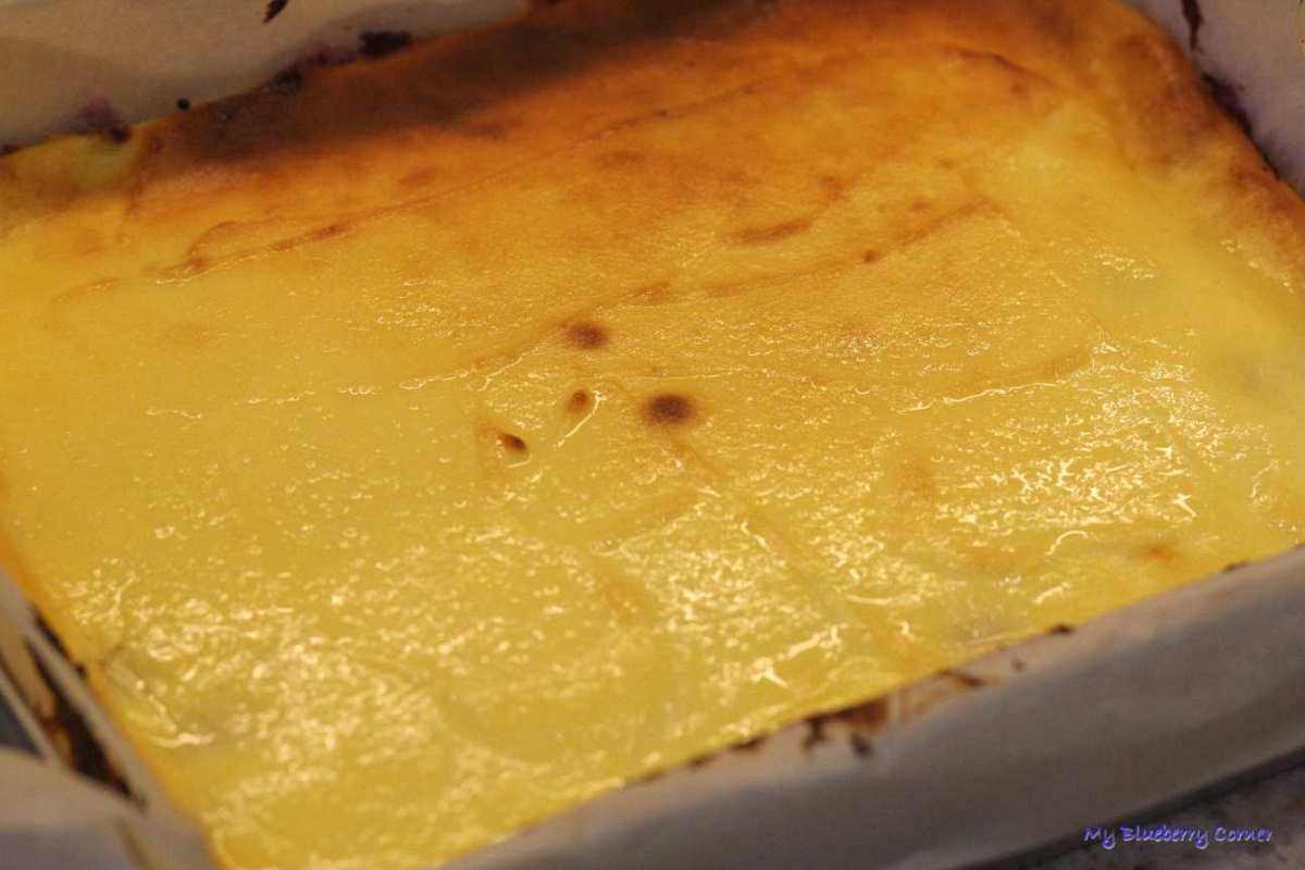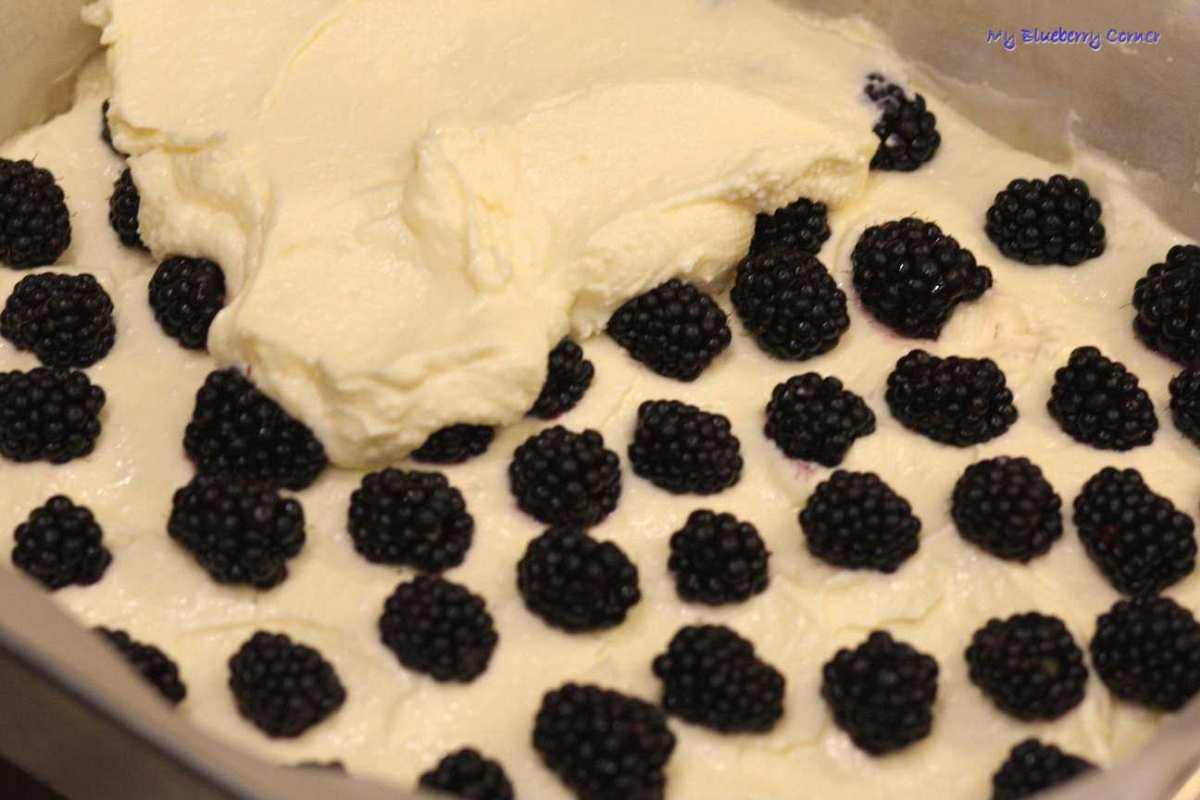 Na ciasto wylać ⅓ masy serowej, na niej ułożyć jeżyny i zalać pozostałą masą.