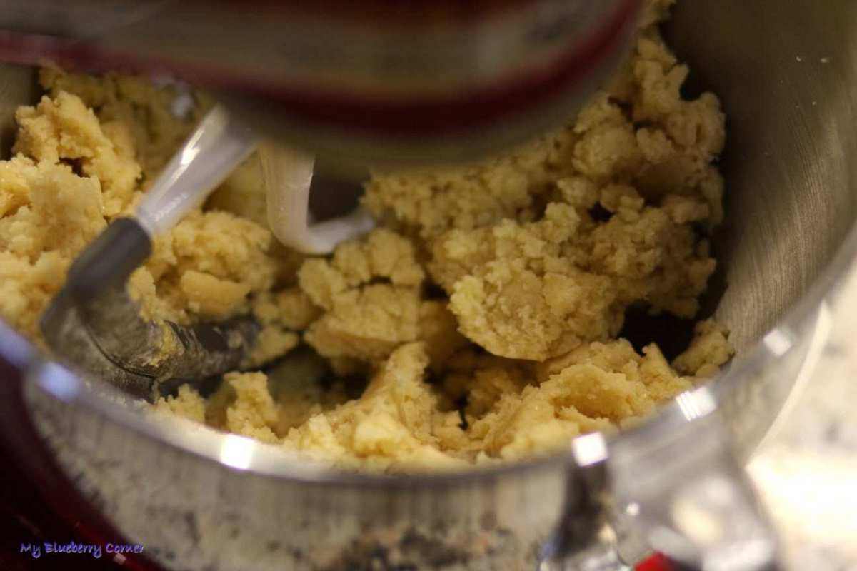 Piekarnik rozgrzać do temperatury 180°C – termoobieg. Masło roztopić i ostudzić. W misce wymieszać mąkę, cukier i proszek do pieczenia, dodać jajko i masło i dobrze wyrobić.