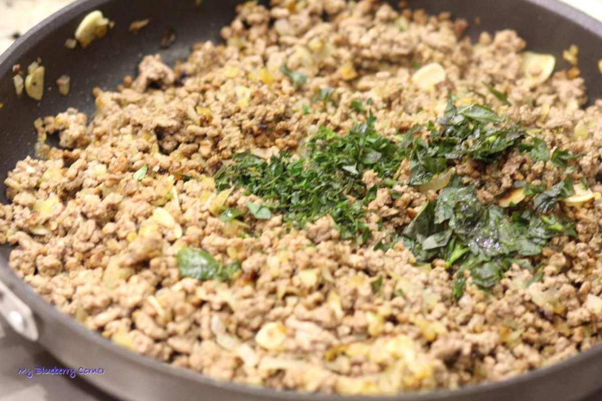 Gdy wołowina się zetnie dodać posiekane zioła i przyprawić.