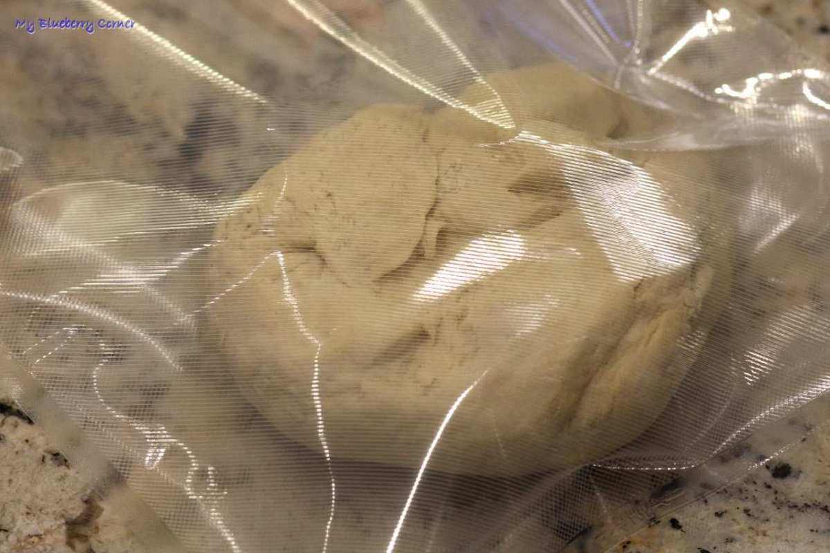 Następnie włożyć z powrotem do torebki i znów ugnieść nogami. Potem wyjąć i złożyć – i tak 4 razy. Odłożyć ciasto (oczywiście w torebce) w ciepłe miejsce na min. 3 godziny.