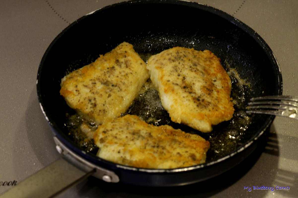 Smażyć rybę bez przykrycia, z dwóch stron, aż będzie delikatnie rumiana.