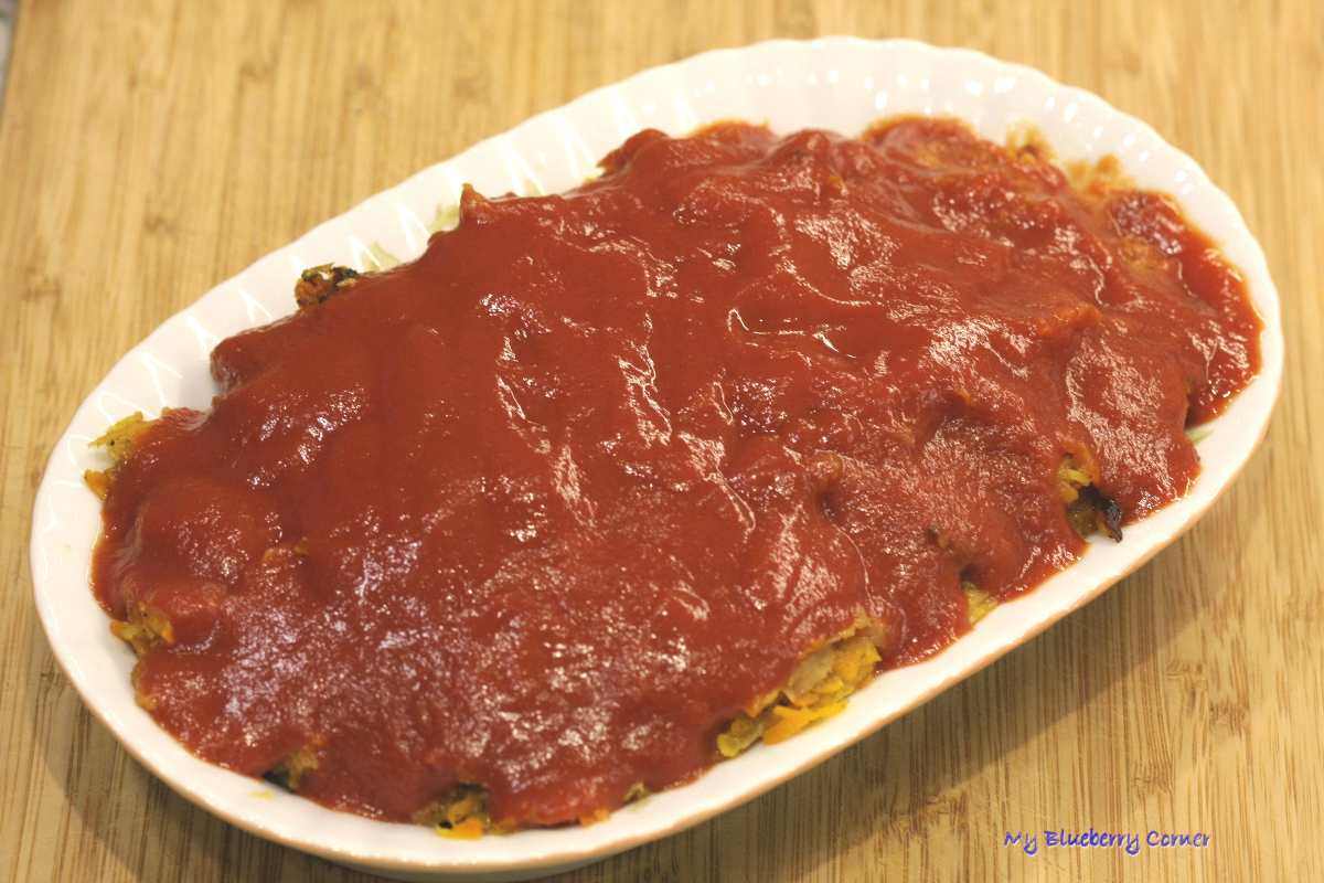 Przecier wymieszać z ketchupem i polać nim zawartość półmiska. Odstawić na min. 2 godziny, żeby ryba przeszła smakiem warzyw.