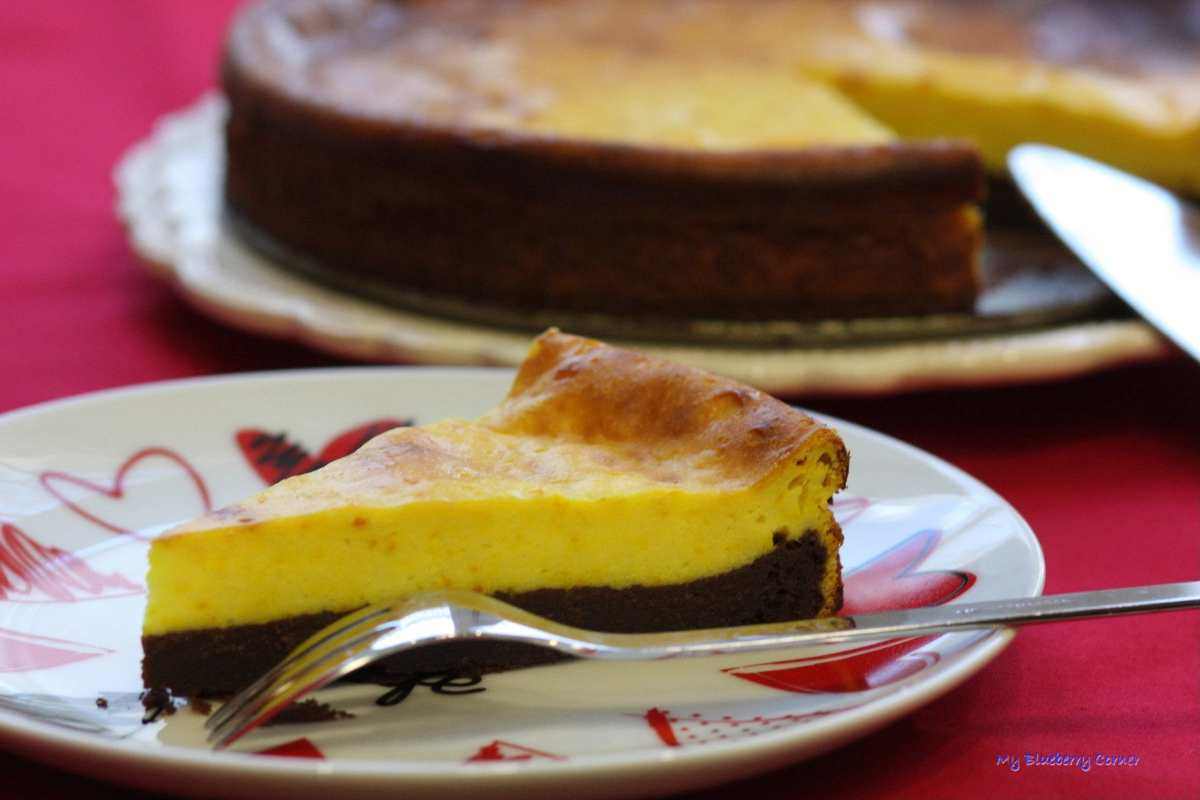 Czekoladowy spód bardzo tu pasuje, a sama czekolada nieźle podkręca smak deseru. Do swojego sernika dodałam świeżej kurkumy. Dzięki niej ciasto miało jeszcze piękniejszy kolor i wyjątkowy smak, ale można ten składnik pominąć. Wielbiciele docenią smak i kolor ciasta. To dla nich prawdziwa gratka.