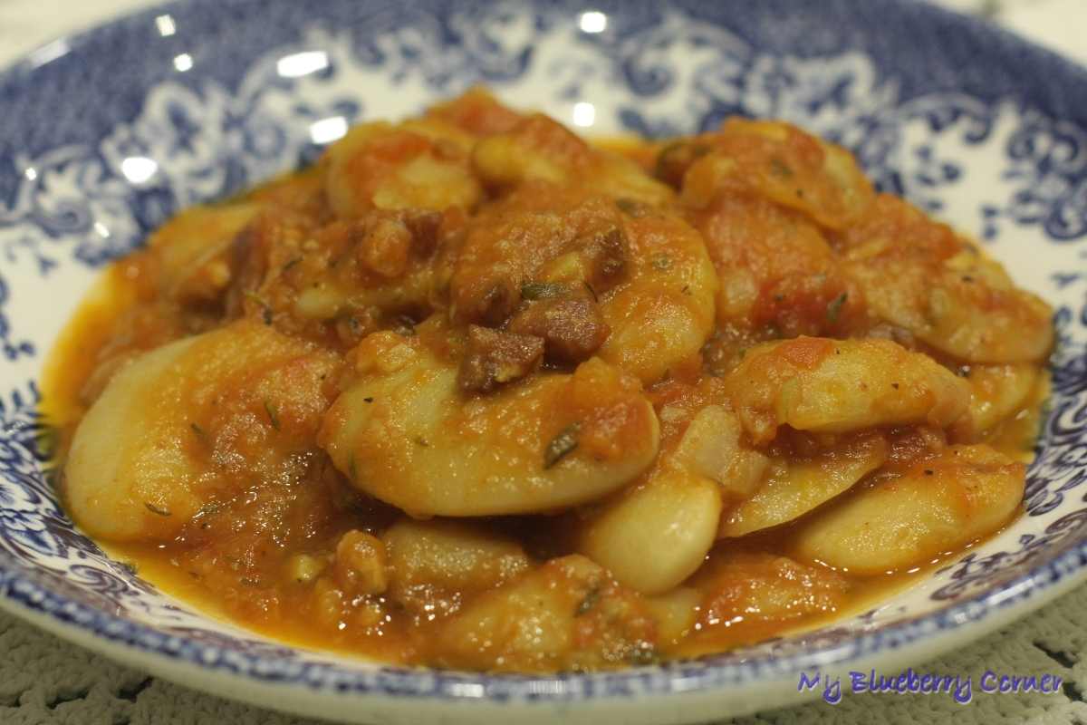 Fasola w pomidorach z tymiankiem to smaczna, lekka przekąska. Na świecie jest około 400 gatunków fasoli, różniących się od siebie wielkością i kolorem. Wszystkie odmiany fasoli zawierają bardzo dużo białka oraz składników mineralnych t.j. potas, wapń i fosfor. Fasola ma też lekkostrawną skrobię i substancje hamujące rozrost tkanek nowotworowych (inhibitory proteazy), zawiera rozpuszczalny błonnik, który pomaga usuwać z organizmu nadmiar cholesterolu. Fasolę można jeść przez cały rok, choć mi najbardziej smakuje jesienią i zimą. Fasola dostarcza do organizmu wszystkich niezbędnych składników odżywczych. W fasoli znajdują się węglowodany i nienasycone kwasy tłuszczowe, które regulują poziom cholesterolu. Fasola zapobiega miażdżycy, nadciśnieniu i zakrzepom. Nienasycone kwasy tłuszczowe są także pomocne przy wchłanianiu witaminy A, witaminy D, witaminy E, witaminy K. Sama fasola zawiera również witaminy z grupy B oraz witaminę E. Zawarta w fasoli lecytyna korzystnie wpływa na tkankę nerwową i mózg, poprawia koncentrację oraz zwiększa pamięć. Rośliny strączkowe są lekkostrawne i powinny być uwzględniane w jadłospisach, jednak tak jak we wszystkim, również w spożyciu nasion roślin strączkowych należy zachować umiar. Fasola w pomidorach, gotowana fasola po włosku, fasolka po bretońsku oraz inne dania z fasolą w moim domu goszczą często.