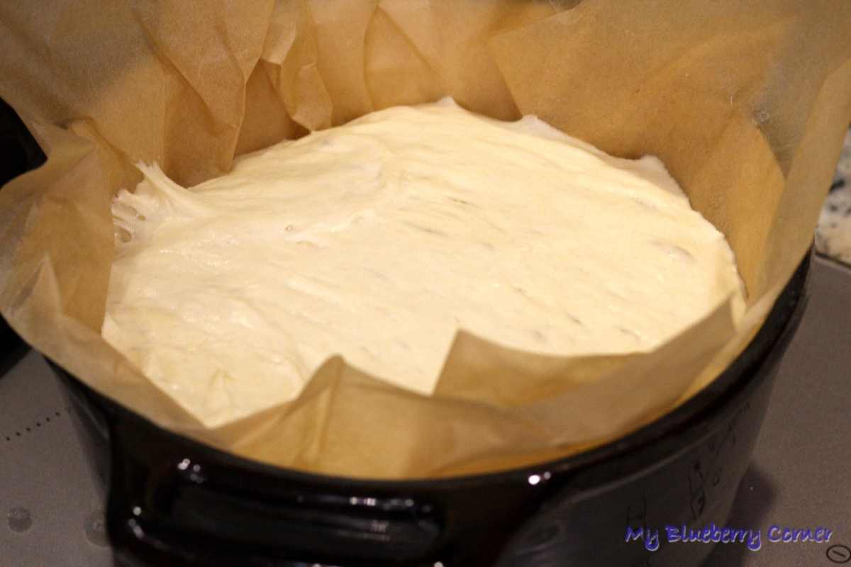Po 1½ godziny rozgrzać piekarnik do 250°C (grzanie tradycyjne góra-dół) i wstawić garnek żeliwny lub żaroodporne naczynie do zagrzania. Pół godziny później garnek wyjąć z piekarnika, zdjąć pokrywkę i przenieść ciasto razem z papierem do gorącego naczynia, przykryć pokrywką i wstawić z powrotem do piekarnika.