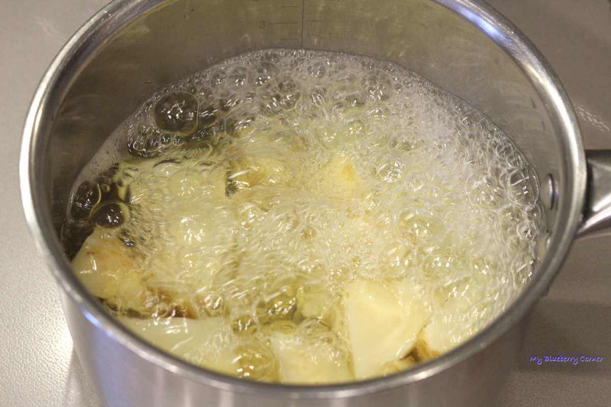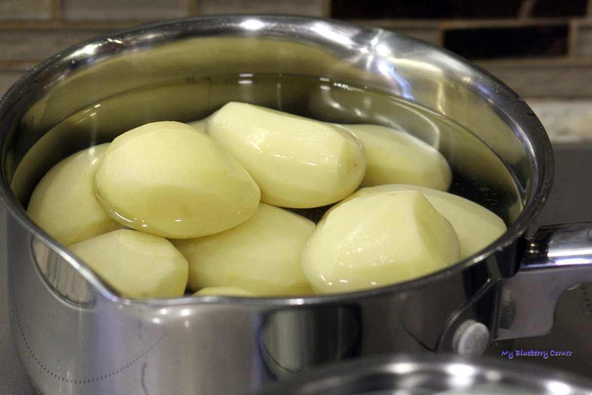 Ziemniaki i selera obrać i ugotować do miękkości w oddzielnych garnkach.