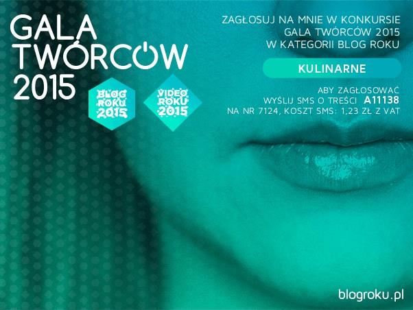 Kochani! W tym roku mój blog ponownie uczestniczy w konkursie Gala Twórców  – Blog Roku, tak samo jak w ubiegłym roku w kategorii – Kulinarne.