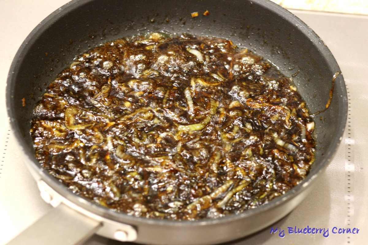 A tak wygląda karmelizowana cebula z czewonym octem winnym podana na steku.