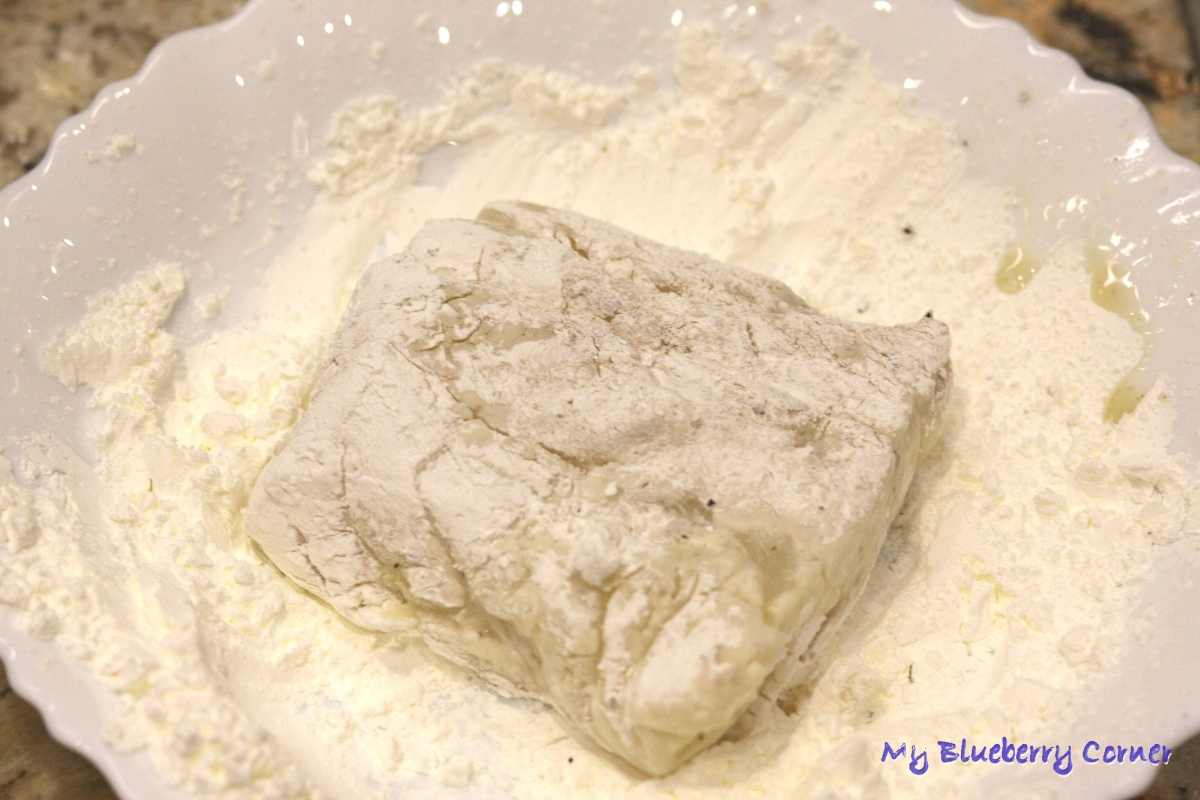 Po chwili dodać paprykę. Smażyć przez 3 minuty. W tym czasie rozgrzać drugą patelnię z olejem rzepakowym. Dorsza obtoczyć w przygotowanej mące kukurydzianej, przełożyć na patelnię.