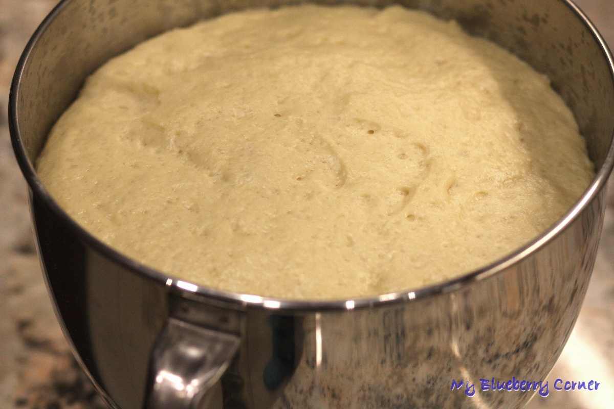 Miskę przykryć ściereczką lub folią spożywczą i odstawić, aż co najmniej podwoi swoją objętość (ja wstawiam miskę do piekarnika nastawionego na rozmrażanie – 35°C).