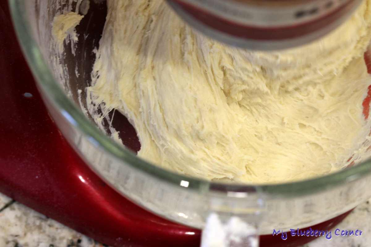 Wyrobić ciasto ręką lub robotem wyposażonym w hak do wyrabiania drożdżowego ciasta.