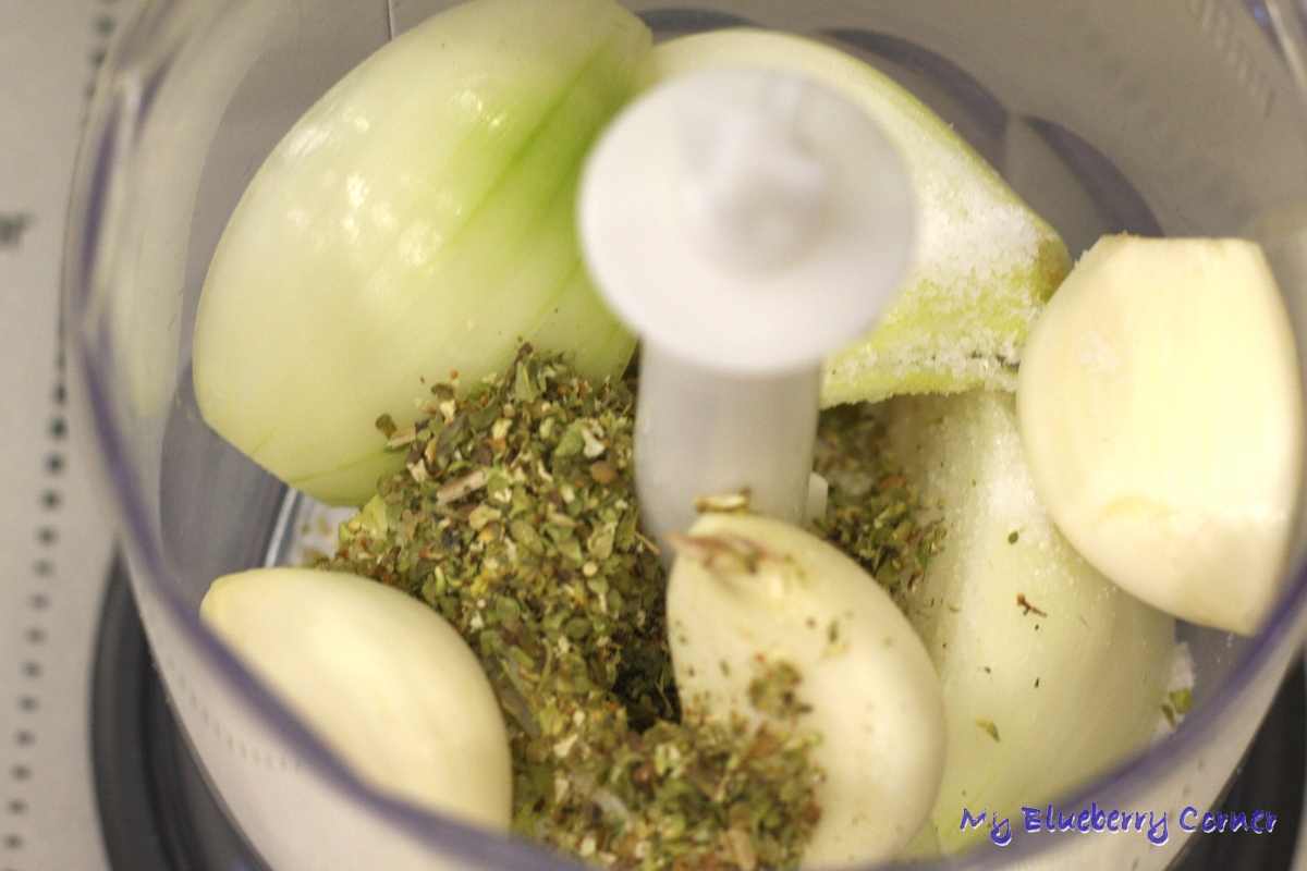 Przełożyć papryki, cebulę, czosnek, oregano i sól do blendera. Dodać ¼ ilości przygotowanej wody i zmiksować wszystko na gładką masę.