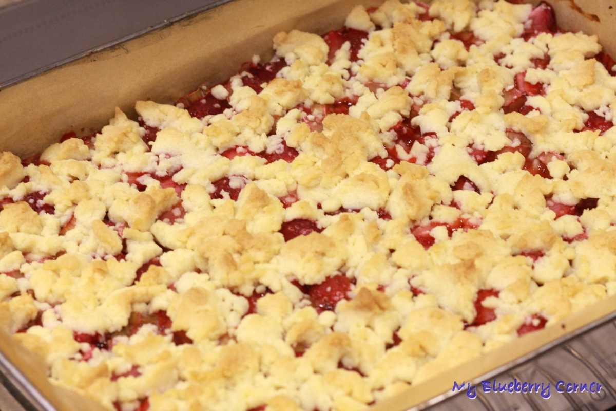 Blachę wstawić z powrotem do piekarnika i piec jeszcze przez ok. 40 minut, aż kruszonka się zarumieni.