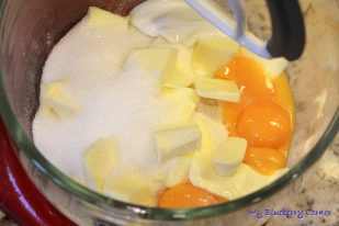 Piekarnik rozgrzać do temperatury 180°C (góra-dół). Zagnieść ciasto z mąki, masła (które należy wkroić w mąkę), cukru, soli, żółtek i śmietany.