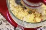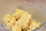 Kruszonka: Mąkę, cukier i masło wymieszać, aż powstaną drobne grudki.