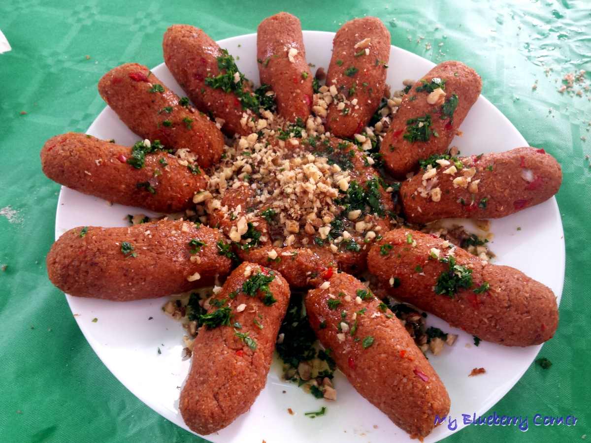Drugim daniem były kibbeh nayeh, czyli cielęcy tatar z kaszą bulgur.