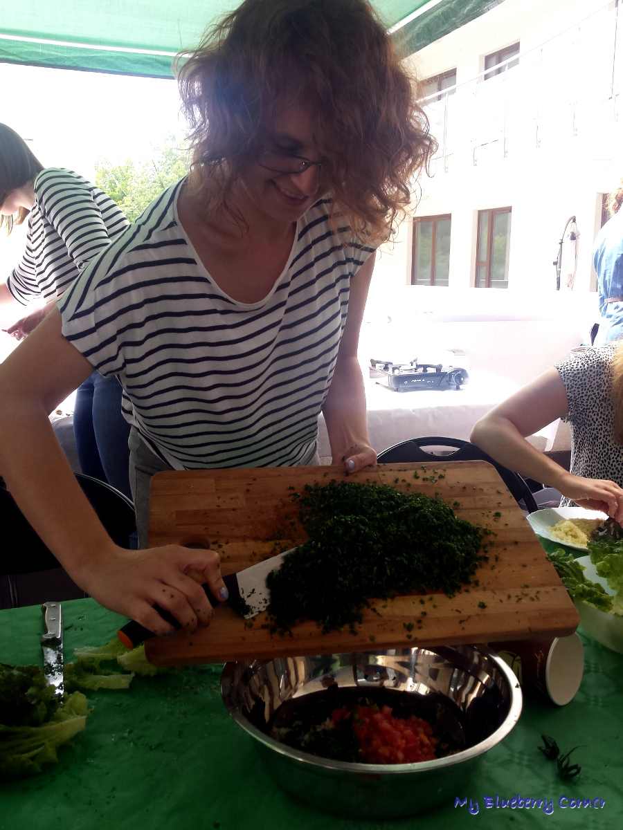 Trzecią potrawą była sałatka tabouli, składająca się głównie z drobno posiekanej natki, kaszy bulgur, soku z cytryny. W syryjskiej kuchni dominuje kmin rzymski, za’atar, oliwa, papryka, pomidory, cebula i czosnek. Jak dla mnie bomba, przede wszystkim witaminowa, ale i smakowa.