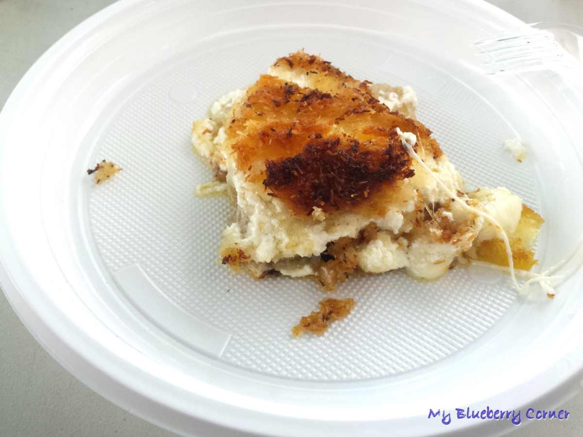 Ukoronowaniem naszych starań było danie na słodko z patelni – knefa pachnąca kwiatami gorzkiej pomarańczy. To nie było łatwe w przygotowaniu. Na początek trzeba było pociąć na drobno gotowe ciasto kadayif (anielskie włosy). Pocięte włosy trzeba silnie wyrobić z dużą ilością klarowanego masła, wylepić połową masy patelnię. Na to rozsmarować sporą ilość gładkiego twarogu i przykryć plastrami sera mozzarella. Potem znowu twaróg i reszta ciasta. Wszystko na patelni powinno być ciasno ulepione i usmażone na rumiano z dwóch stron. Gotowe ciasto polewane na wierzchu przygotowanym z wody, cukru i kilku kropel wody o smaku gorzkiej pomarańczy.