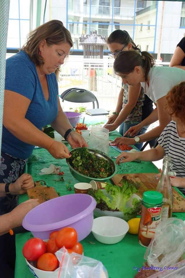 Po raz pierwszy wybrałam się na warsztaty kulinarne. Prowadziła je bardzo miła dziewczyna (pół Syryjka, pół Polka), urodzona w Syrii, od 3 lat mieszkająca z rodziną w Polsce Karima Kanjo. Karimie pomagała Wiktoria prowadząca bloga Pyza made in Poland oraz Karolina z Muzeum Azji i Pacyfiku, gdzie odbywały się warsztaty.