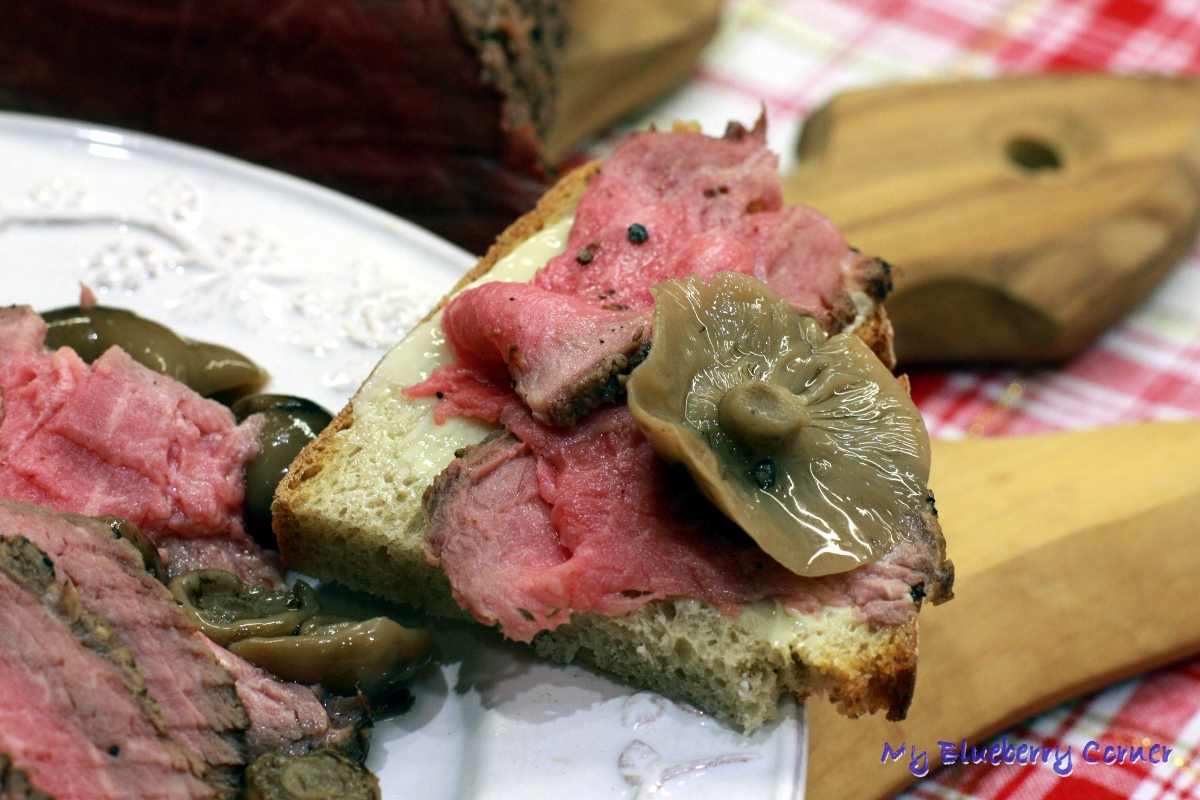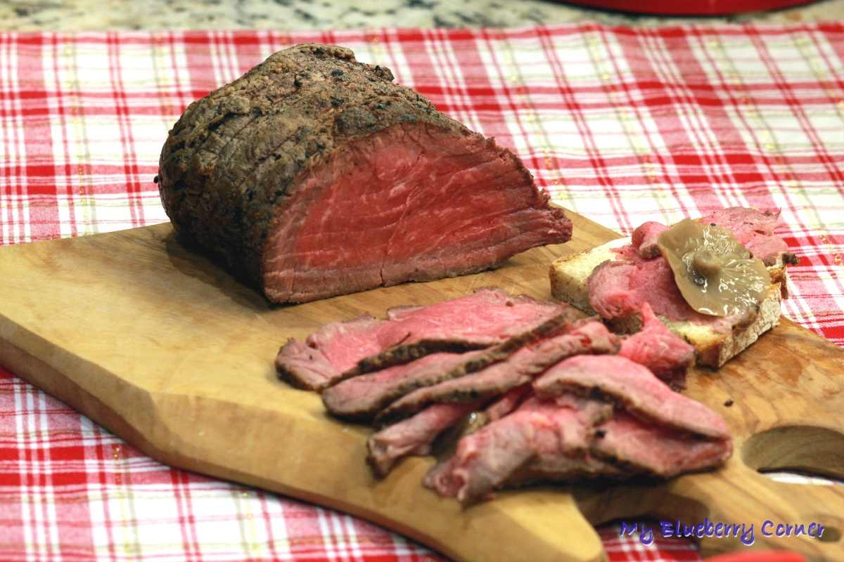 Tak przyrządzona wołowina jest soczysta, delikatna. Pieczony rostbef świetnie nadaje się na obiad, do kanapek, tostów, sałatek, na imieniny, święta i sylwestra.
