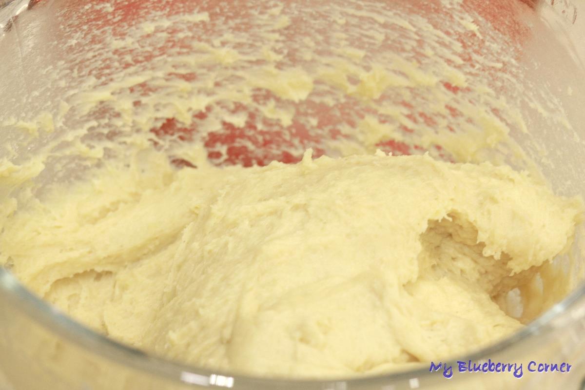 Wszystko porządnie wyrobić ręką lub za pomocą miksera wyposażonego w hak do mieszania ciasta drożdżowego.