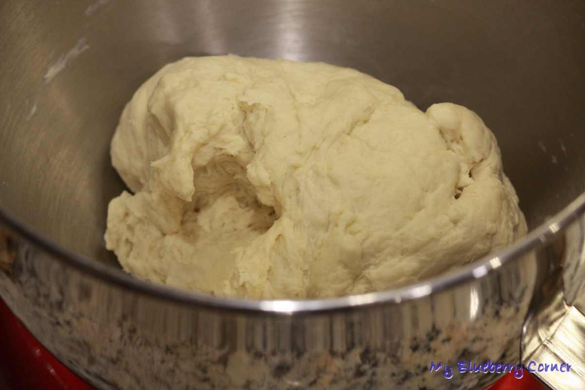 Po tym czasie ciasto wyrobić, znów przykryć i odstawić na kolejne 15 minut. Na koniec ciasto na pierogi jeszcze raz dobrze wyrobić.