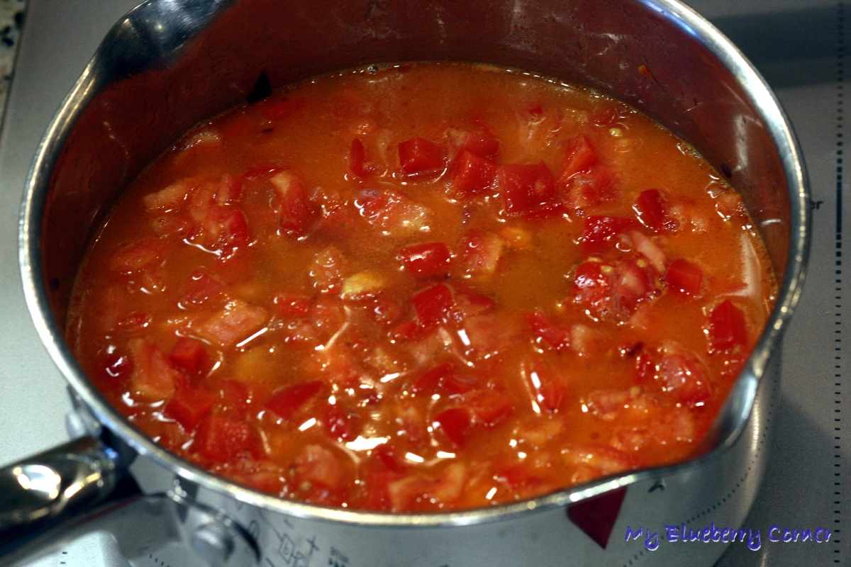 Pomidory pokroić w małą kostkę, przełożyć do garnka.