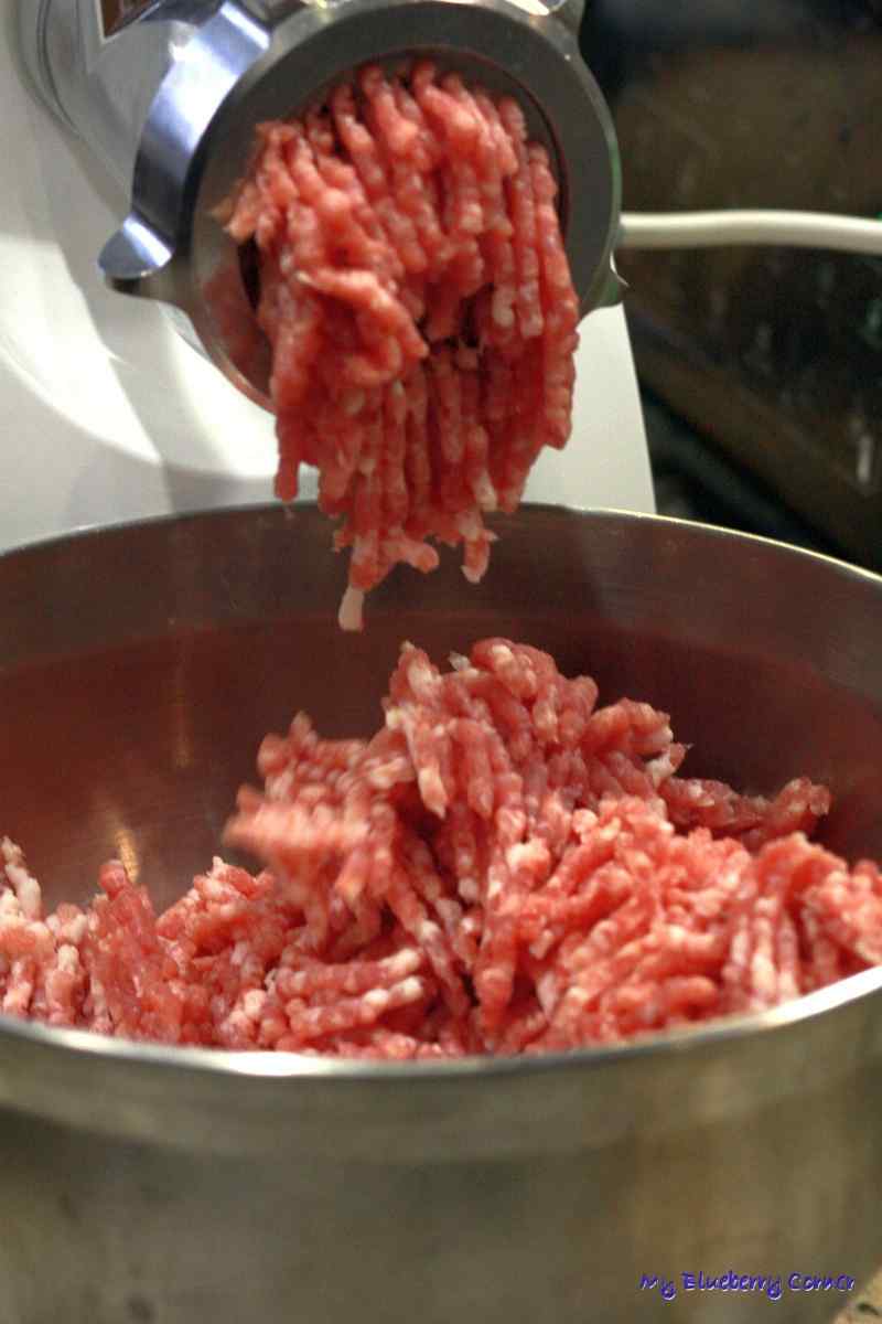 Karkówkę zmielić. Mięso przełożyć do miski, dodać kaszę.