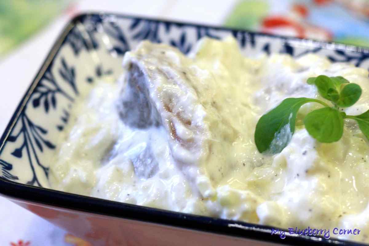 Wszystko razem wymieszać, przełożyć do słoika i odstawić na ok. 24 godziny, wtedy śledzie w jogurtowym sosie smakują najlepiej.