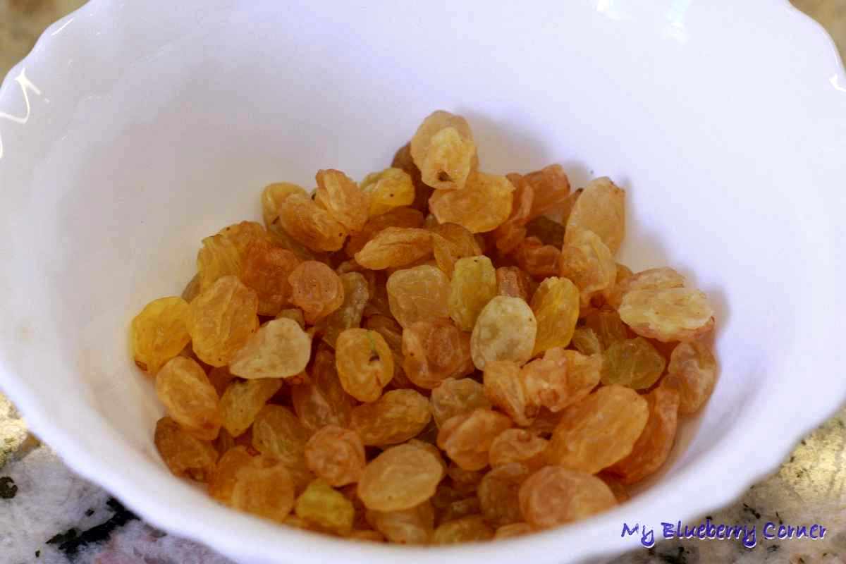 Migdały i rodzynki również zalać wrzątkiem i odstawić do wystudzenia.
