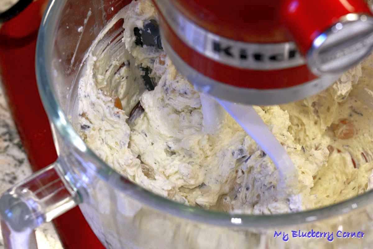 Teraz stopniowo, po jednej łyżce dodawać do masy twaróg.