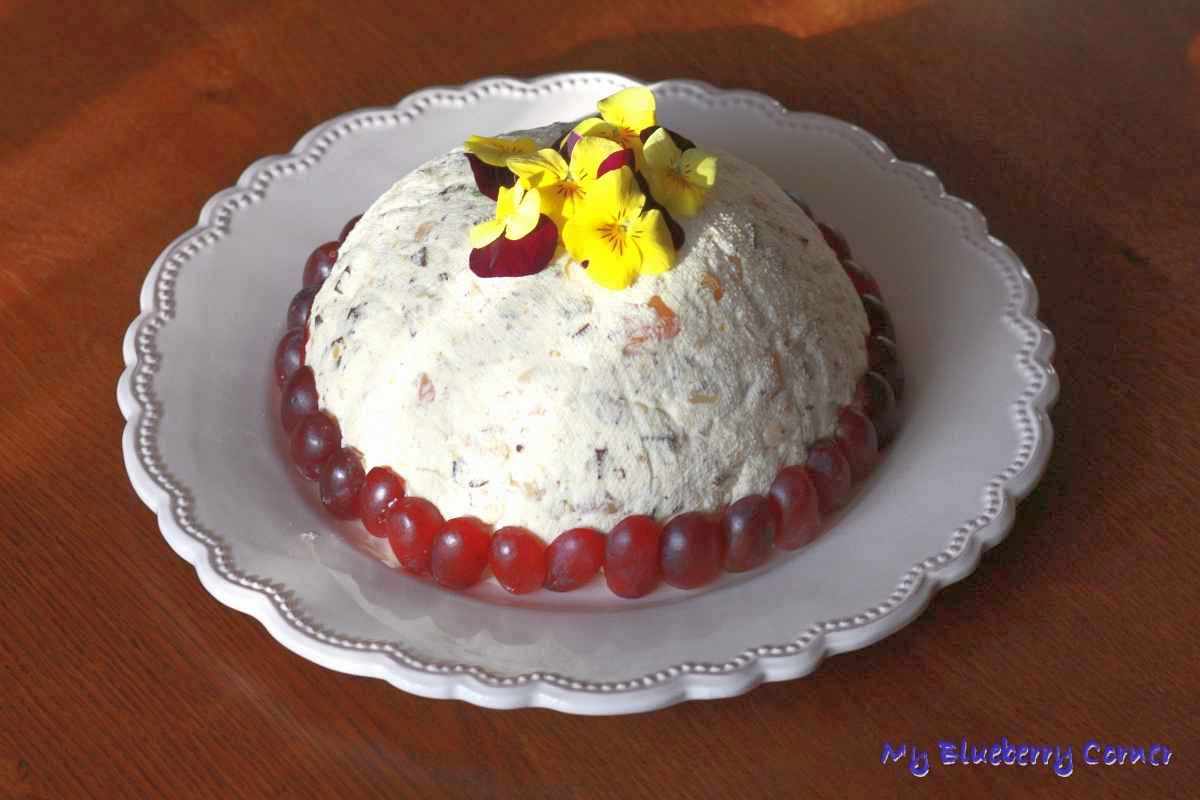 W ludowej tradycji jajka symbolizowały życie oraz odradzającą się przyrodę, a bakalie dobrobyt, pomyślność i płodność. Przepis dostałam od Hani – mojej przyjaciółki i cioci jednocześnie. Jest to przepis jedyny w swoim rodzaju, bo do tej paschy dodaje się żółtka ugotowane, dzięki temu, jedzącym nie grozi salmonella. Ja dodatkowo przepis odchudziłam i zamiast cukru pudru użyłam ksylitolu. Paschę kształtuję na sitku i przystrajam jadalnymi kwiatami lub bakaliami. To pyszny i łatwy do przygotowania wielkanocny deser.