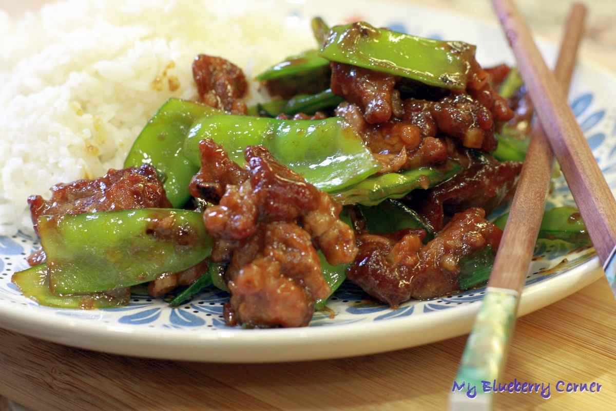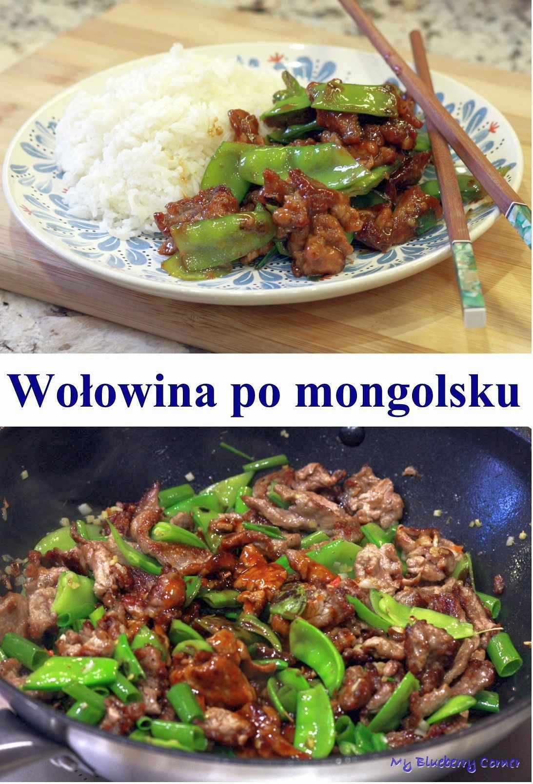 Wołowina po mongolsku to danie aromatyczne, sycące i bardzo smaczne. O tym daniu usłyszałam w jednym z programów (Food Factory – fabryki smaku) na kanale Discovery. Program przedstawiał kulisy produkcji sosu hoisin, popularnego w Chinach, słodko-pikantnego, gęstego sosu. Jeden z opowiadających o produkcji sosu powiedział, że on używa go do przygotowania wołowiny po mongolsku. Od razu znalazłam ten prosty przepis, troszkę go zmodyfikowałam (oryginał był dla mnie za słodki). Dodałam też 2 garście strączków zielonego groszku, bo groszek doskonale wpisuje się w kuchnię chińską a teraz mam go dużo w ogrodzie.