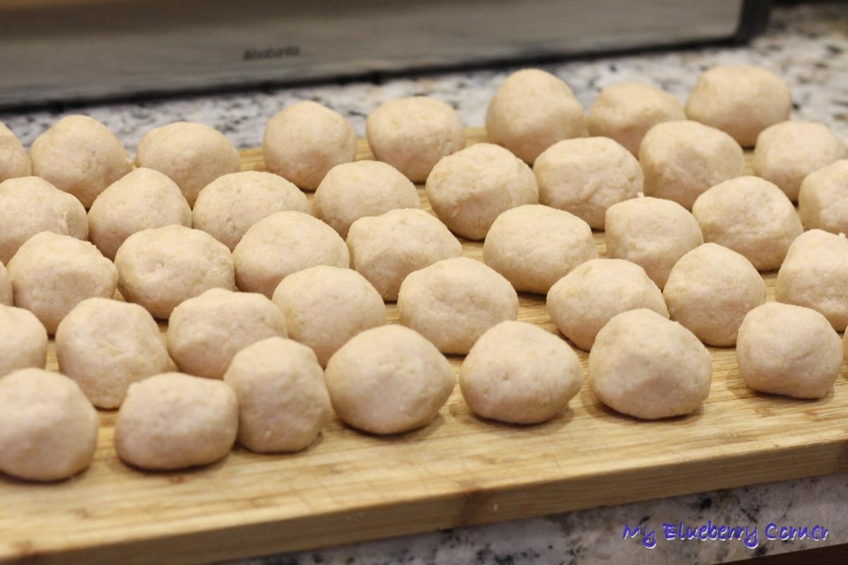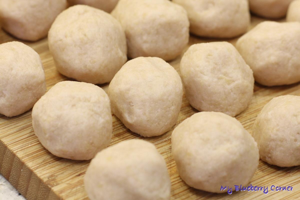 Wrzucać pyzy po 10-15 (w zależności od szerokości garnka) i gotować od wypłynięcia ok. 4 minuty.