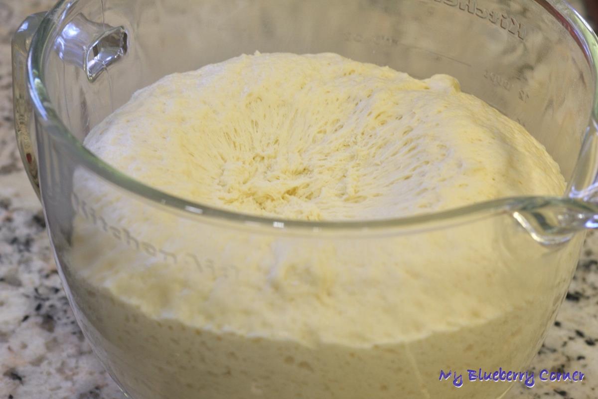 Odstawić w ciepłe miejsce do wyrośnięcia (ciasto powinno potroić swoją objętość).