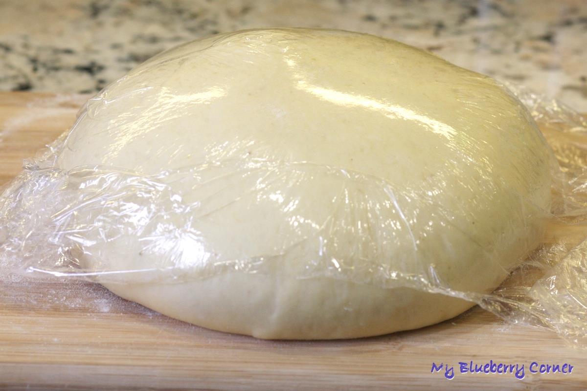 Ciasto delikatnie przegnieść, uformować kulę i odstawić (przykryć folią spożywczą) na kolejne 30 minut.