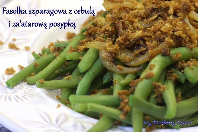 Fasolka szparagowa z cebulą i za’atarową posypką to miła odmiana dla znanej wszystkim i lubianej fasolki z bułką tartą. Mnie zachwycił połączony smak karmelizowanej cebulki i delikatnej za’atarowej posypki, co wzmocniło smak fasolki. Za’atar (zatar, zahtar) to arabska mieszanka przypraw. Może zawierać prażone ziarna sezamu, mielony sumak oraz oregano, tymianek, cząber, majeranek, sól, oliwę.