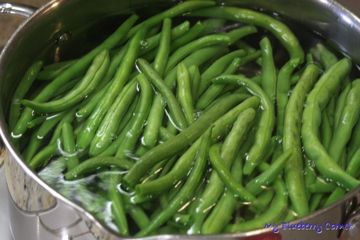 Z fasolki odciąć końcówki, wrzucić do wrzącej, posolonej wody i gotować przez 10 minut.