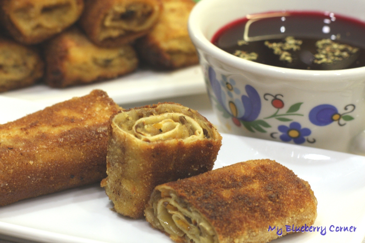 Krokiety z kapustą i grzybami podawać od razu po usmażeniu i kubkiem gorącego czerwonego barszczu.